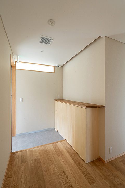 寝室の横には広いウォークインクローゼット(ファミリークローゼット)、玄関を入ってすぐの洗面、キッチン裏のパントリー、などなど生活を重視した間取りとしました。